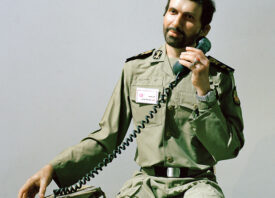 For her powerful series Today’s Life and War, photographer Gohar Dashti catalogues the emotional effects of the Iran-Iraq War of 1980, giving form to the invisible but pervasive anxieties that linger in the minds of civilians decades after its close in 1988. In these staged narrative images, the artist explores the complex and contradictory impulses that govern even the most routine tasks. A couple eats breakfast and cleans their laundry, inescapably haunted by the violence that springs forth from newspapers and television sets. As they navigate uneven, chaotic terrain, their humble wedding party is trailed by tanks and troops.