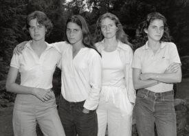 Urban environments and handheld technology can make the world an isolating and lonely place, genuine connections often replaced with texts or tweets. How long does it take to gain some one’s trust or become close enough to share secrets? Can intimacy be concocted in mere moments or does it take years? Hemya Moran plays with ideas of communion and relationships in her series Intimate Strangers. Approaching individuals in the street, Moran asked them to have an “intimate acquaintance with her”. They then enacted these private moments in a short exchange, resulting in a series that feels simultaneously unnatural and surreally familiar. The viewer must guess at the relationship, left to wonder at the origin and truthfulness of each staged setting.